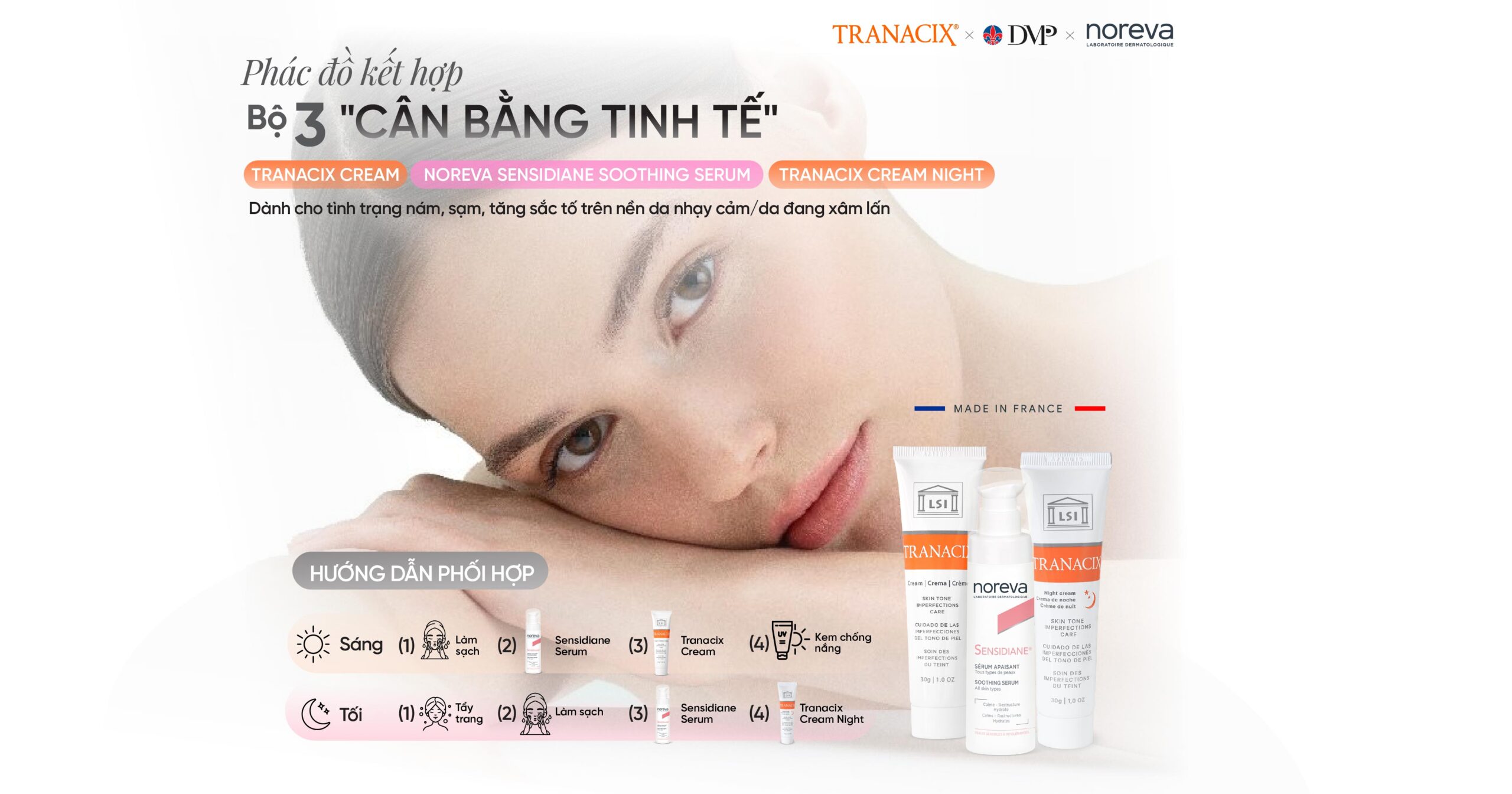 PHÁC ĐỒ KẾT HỢP “BỘ 3 CÂN BẰNG TINH TẾ”: TRANACIX CREAM – NOREVA SENSIDIANE – TRANACIX NIGHT CREAM